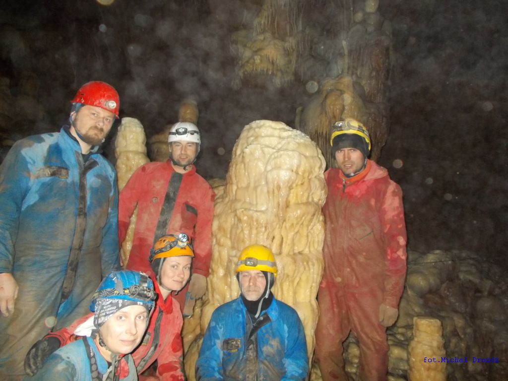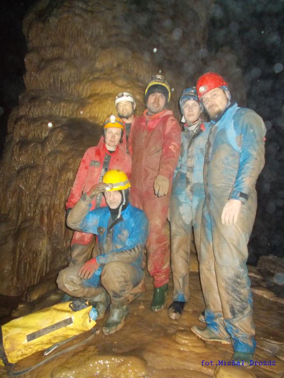 Następnego dnia wyruszyliśmy do Pestera Crailui. Również w tym przypadku trzeba było wziąć przewodnika (poszedł z nami Tudor); nie było natomiast konieczności dzielenia się na dwie grupy. Pierwsze fragmenty jaskini pokonaliśmy przechodząc po zainstalowanych na stałe metalowych drabinkach. Następnie czołgaliśmy się przez częściowo zalane wodą zaciski, zaraz po których znowu czekały metalowe drabinki. Chwilę później otworzyła się przed nami wielka komnata z podziemnym jeziorem. Na drugi brzeg można się było dostać idąc po rozwieszonych nad taflą wody konopnych linach. Idąc dalej trzeba było pokonać wysokie na kilkanaście metrów, bardzo śliskie i błotniste zbocze. Trawers po nim był zaporęczowany linami, w kluczowych miejscach można też było znaleźć wydrążone w ziemi stopnie. Z informacji podanych przez Tsupiego wynikało, że jaskinię przez wiele lat eksplorowali Węgrzy, oni też założyli drabinki i poręczówki oraz założyli miejsce biwakowe. Był tam pozostawiony namiot, a także zrobiony prowizoryczny prysznic i miejsce na grilla. Obozowisko było umiejscowione w najciekawszych pod względem wizualnym partiach jaskini. Naprawdę było co oglądać ponieważ Pestera Crailui miała bardzo bogatą szatę naciekową z mnóstwem stalaktytów, stalagmitów i stalagnatów o różnorakich barwach i odcieniach. Ponieważ jaskinia miała tylko jeden otwór wejściowy, wracaliśmy tą samą drogą.