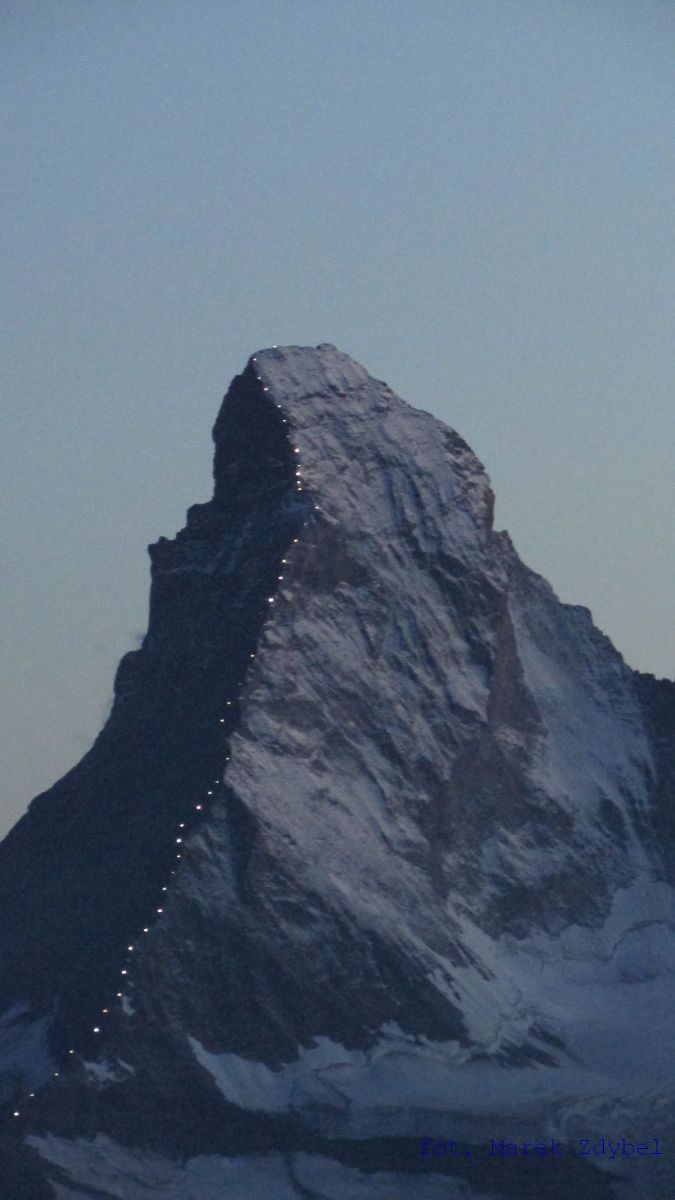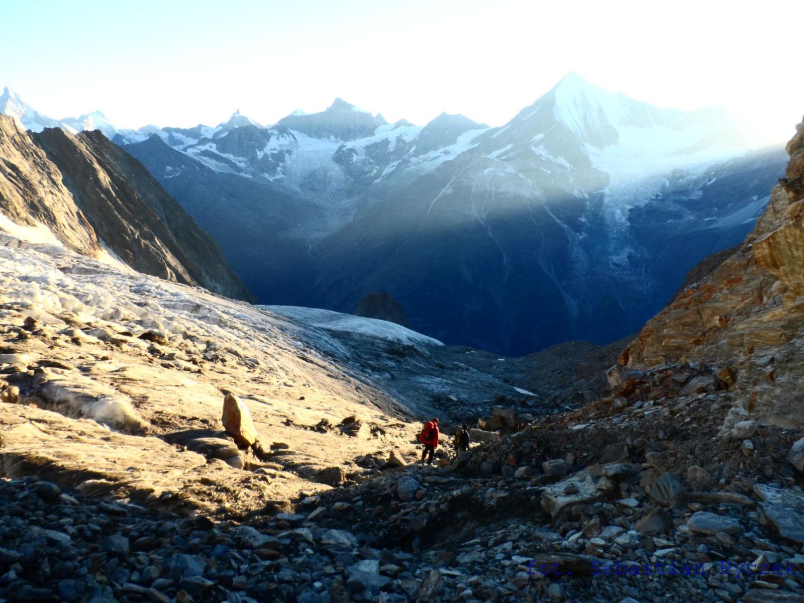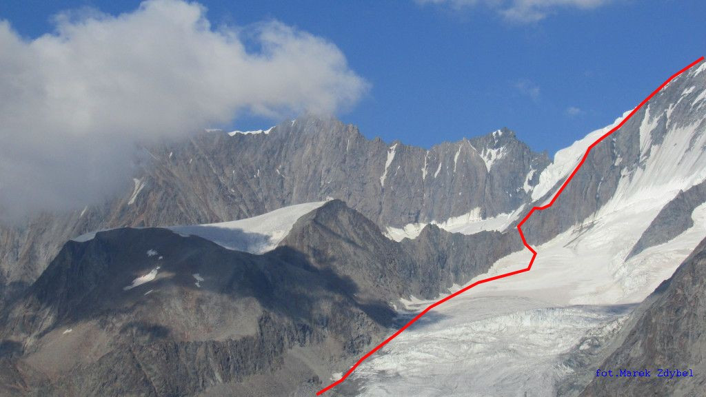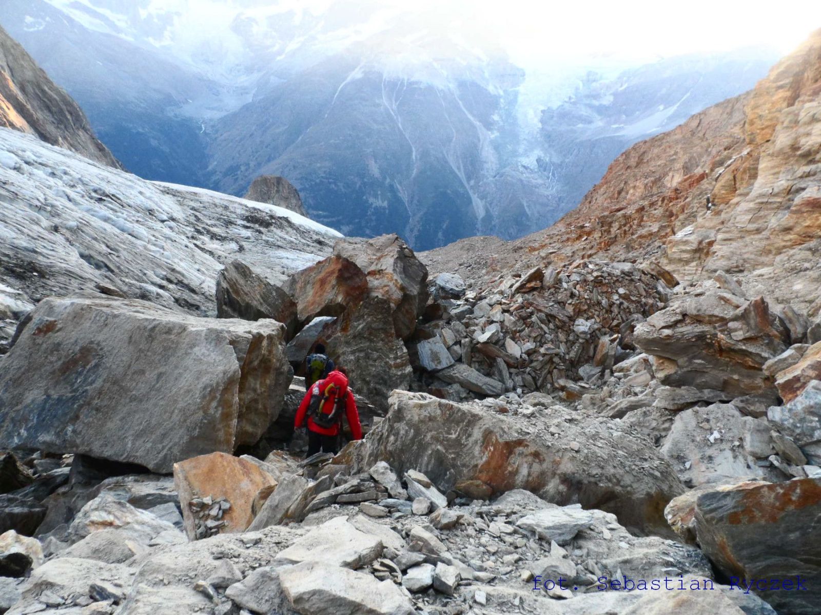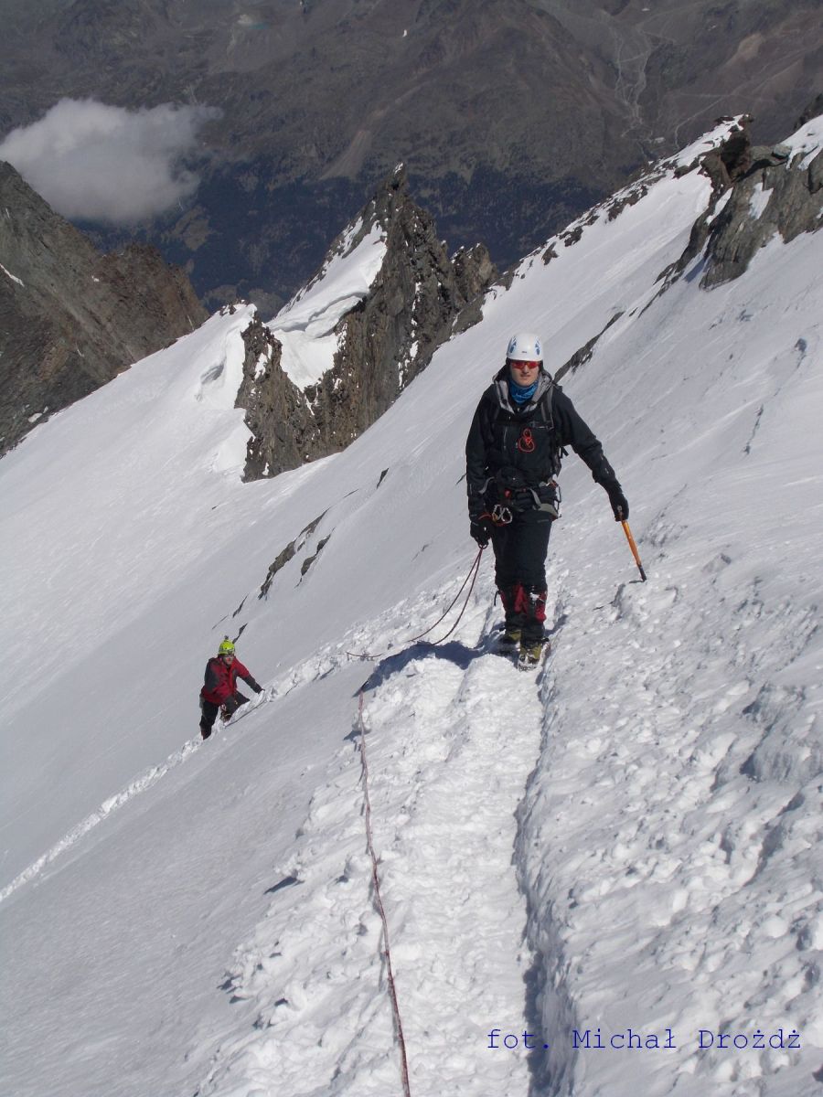W sierpniu 2015 roku pojechaliśmy trzyosobową ekipą (Michał Drożdż, Sebastian Ryczek, Marek Zdybel) w rejon Zermatt, który znajduje się w Alpach Walijskich. Naszym pierwszym celem był mierzący 4545 m n.p.m. Dom de Mischabel („katedra”). Chcieliśmy wejść na niego drogą północno – wschodnią czyli Granią Festi o trudnościach PD, z miejscami skalnymi wycenionymi na II.